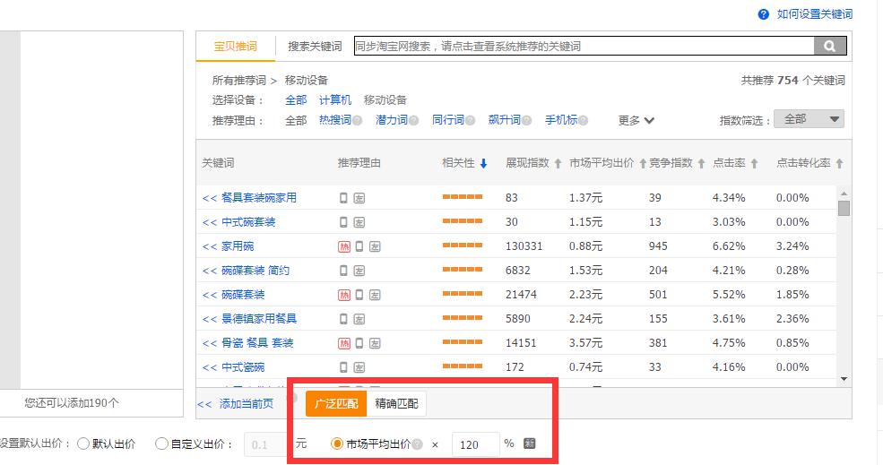 主要在长尾词和下拉词使用广泛匹配,如果我们是标品,或者那种特殊产品,本身的展现就不多的,我们就可以抢占大词,用精准匹配。
