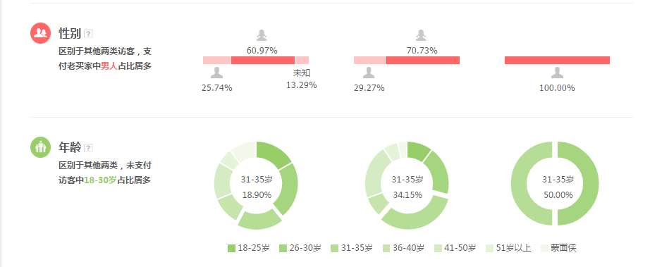 首先应该考虑我们的店铺消费人群的层级与年龄。生意参谋—流量—访客分析(7日平均)。
